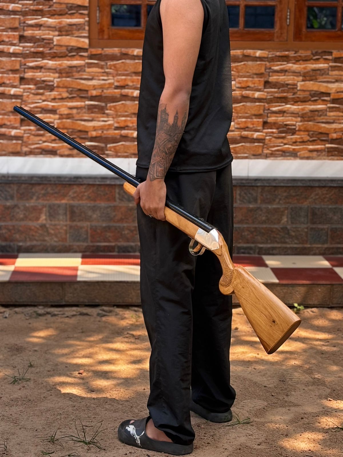 A classic Double-barrel design crafted with realistic detailing, made purely for display. Lightweight, safe, and perfect for wall mounting as a statement décor piece.
