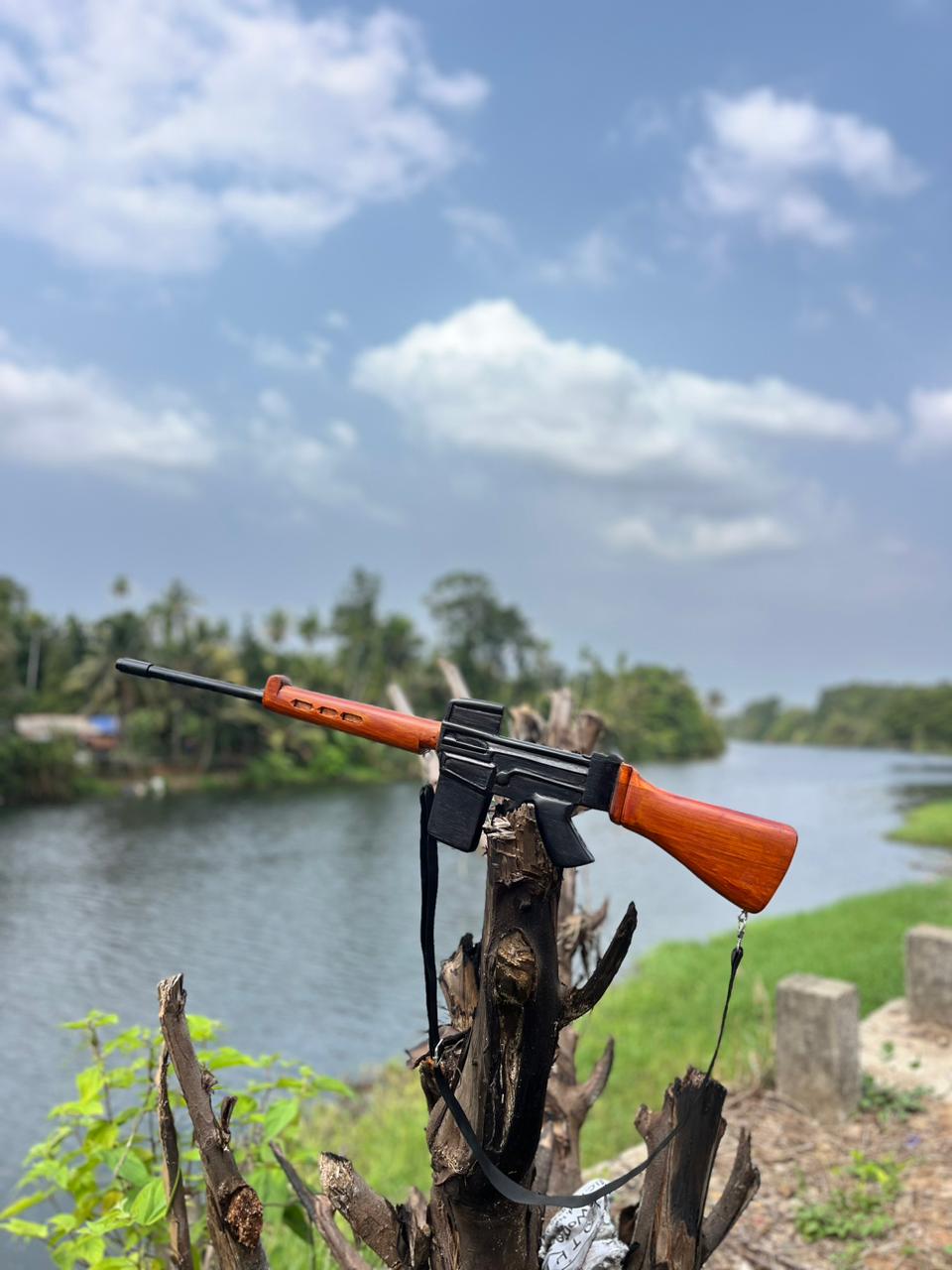 A classic Double-barrel design crafted with realistic detailing, made purely for display. Lightweight, safe, and perfect for wall mounting as a statement décor piece.